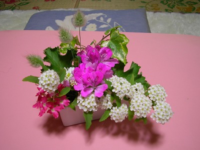 お家で咲いたお花でのアレンジメントっていいなあ。かわいいよ♪