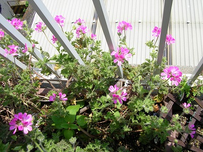 4階のベランダは、現在ローズゼラニュームのお花畑です。