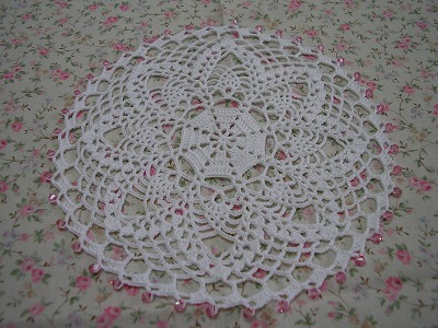 ↓はあとさん改めななさんからいただいたビーズつきドイリー