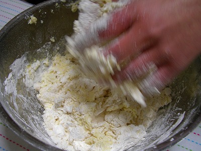 強力粉とイーストは使わず、薄力粉とベーキングパウダーです。