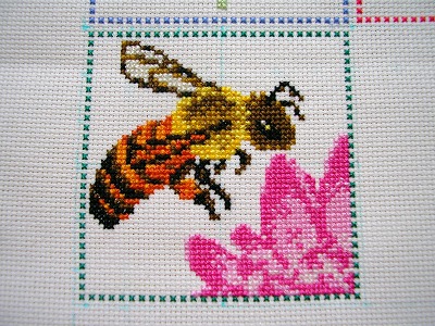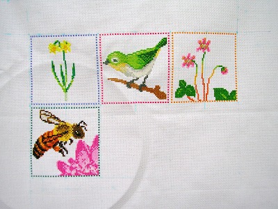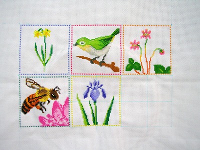 この位置にはブルー系の花を入れて欲しかったので、やっとブルーのお花をステッチできて楽しかったわ~~♪