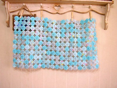 モチーフのキルト同士はアクリルビーズを入れて繋ぎました。
