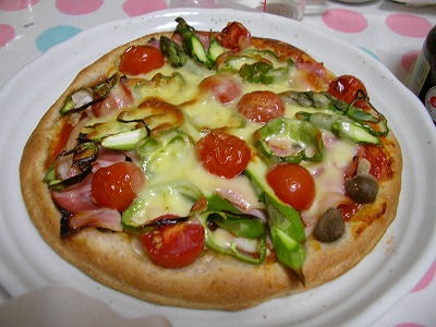 1回目の時は、天板に広げてでっかいピザを2枚焼いたけど