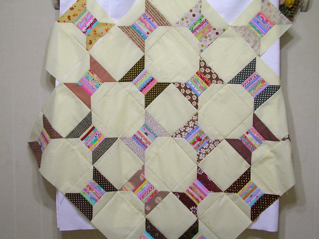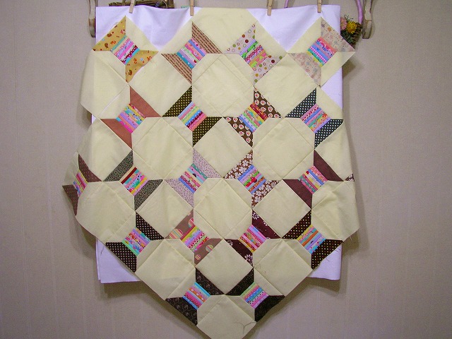 スクラップキルト第1段もついでにアイロンかけたらマシになったよ。